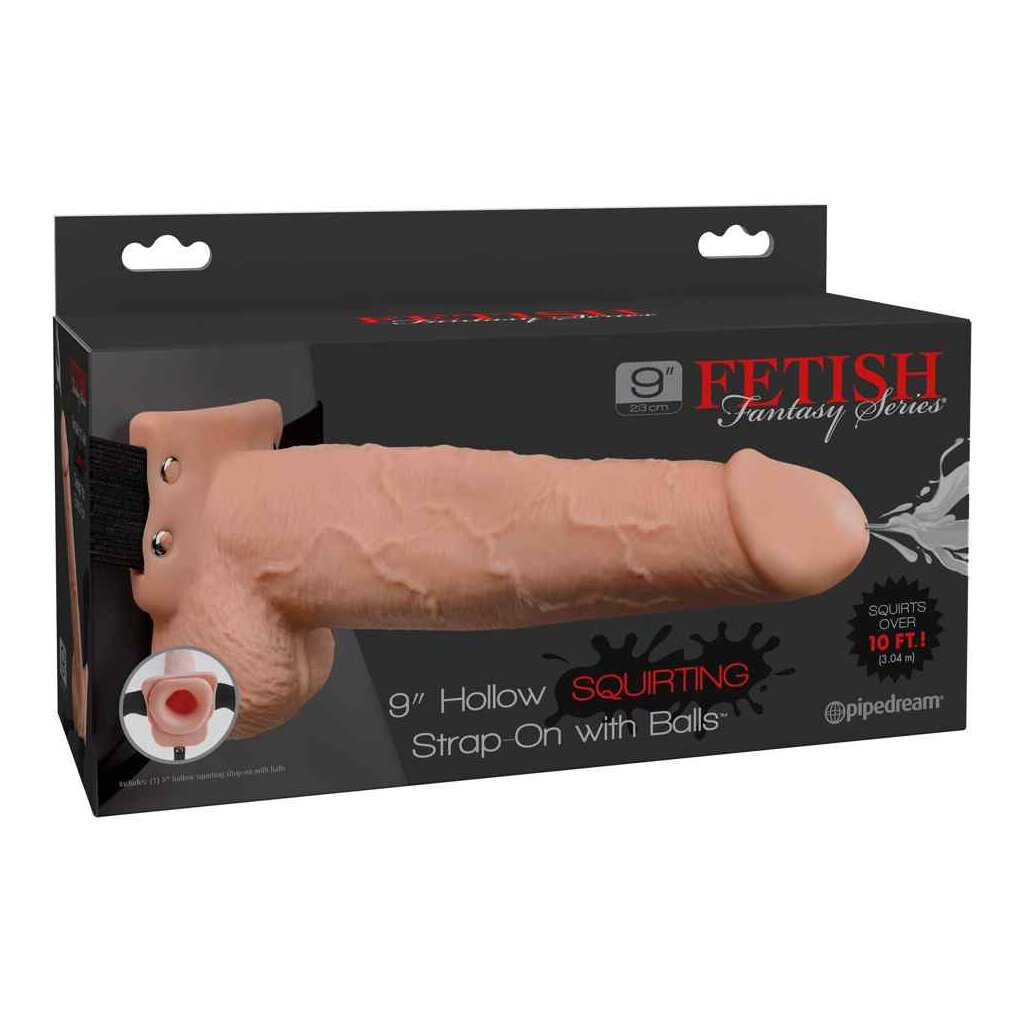 Hohler Naturdildo mit elastischem Strap-on. Der pralle Naturbursche überzeugt mit seinen realistischen Details und ist dazu noch absolut gefühlsecht. Die zusätzliche Spritzfunktion und sorgt außerdem für ein atemberaubendes Sperma-Feeling. Von Mann und Frau tragbar.