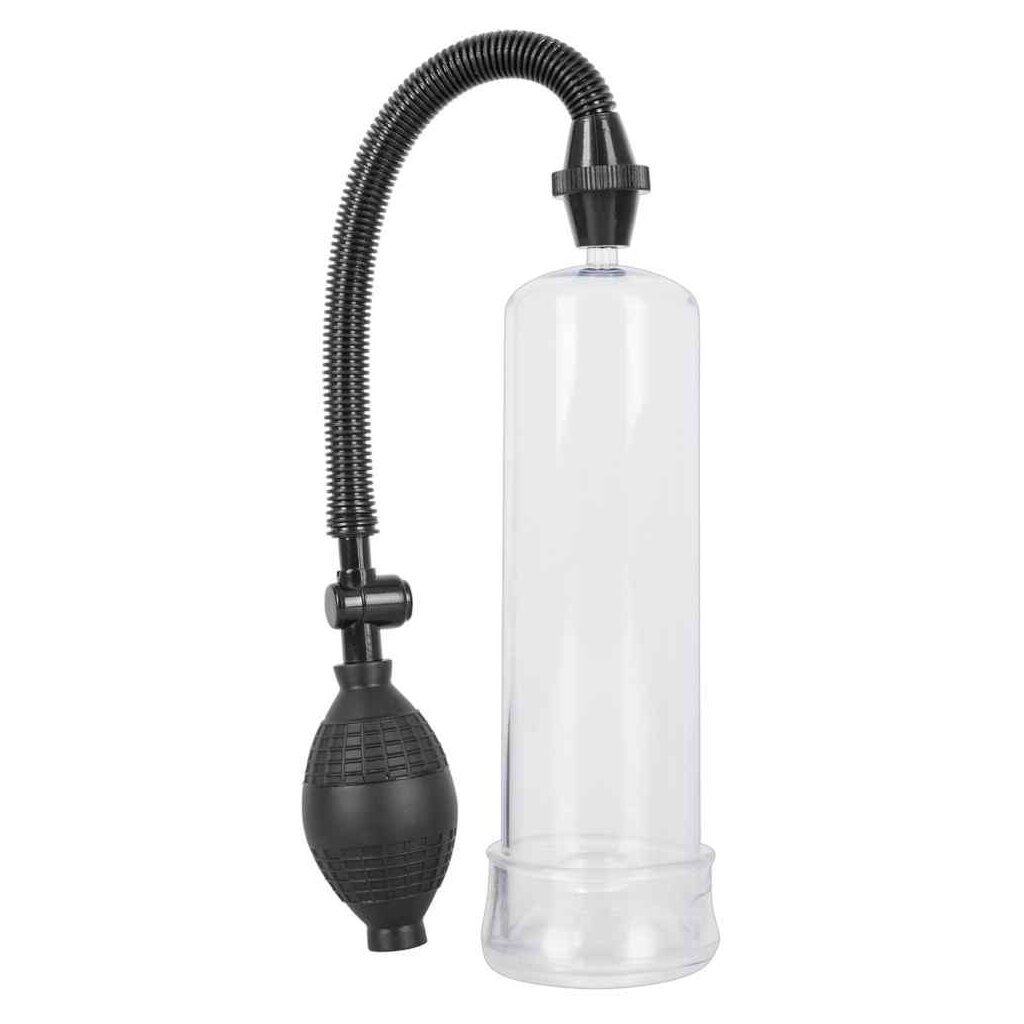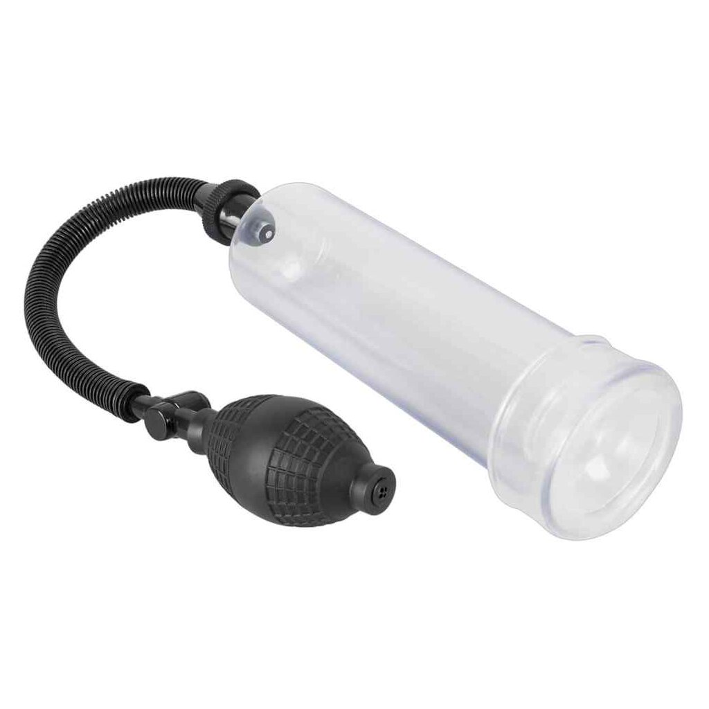Unterdruck-Pumpe für ein effektives Penis- und Potenz-Training mit dauerhaftem Erfolg. Klarsicht-Vakuum-Zylinder 20 cm lang, Einführtiefe 18,4 cm, Ø innen 5,3 cm, Ø außen 5,5-5,8 cm. Ø Sleeve-Öffnung 2,5 cm (dehnbar). Handlicher Pumpball mit Sicherheits-Druckventil.
