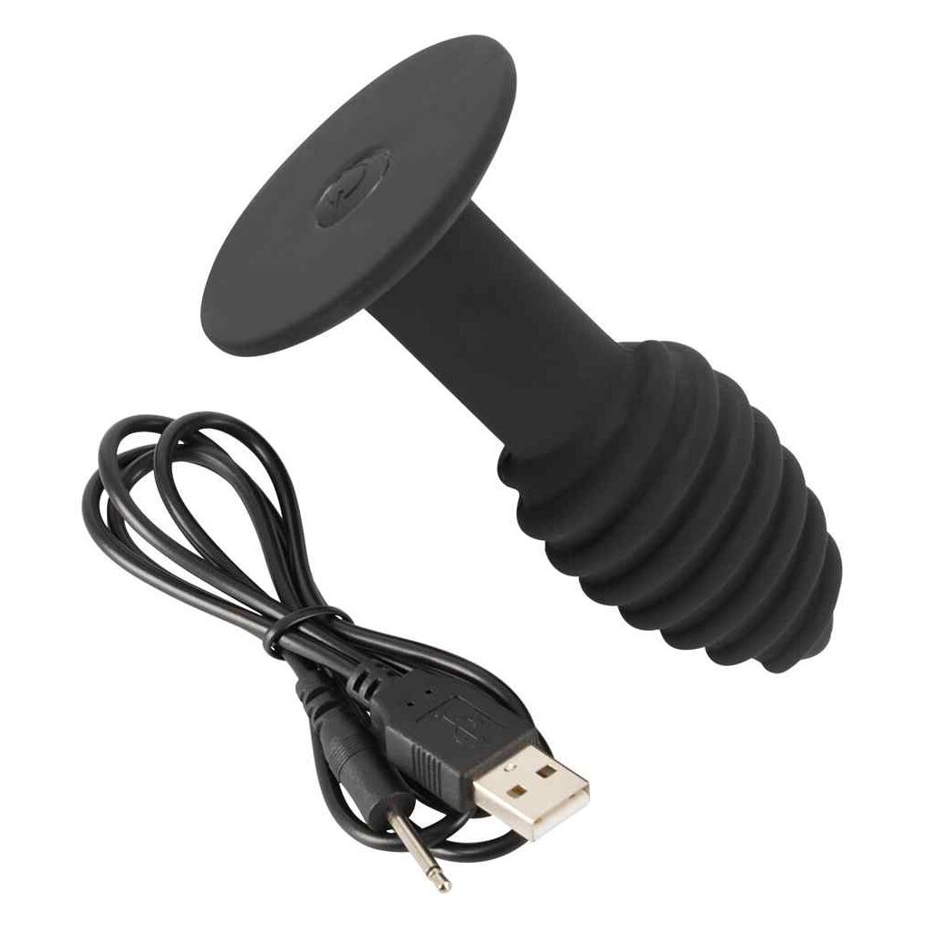 Ideal geformter, sich verjüngender Twist butt plug von Black Velvets mit Vibration und ausgeprägter Rillenstruktur. Die 7 Vibrationsmodi sorgen für abwechslungsreiches Anal-Vergnügen, während das weiche Material wunderbar geschmeidig in anale Regionen vordringt. Der Standfuß verhindert, dass der Plug zu tief hineingleitet und ermöglicht gleichzeitig den handfreien Ritt. Auch in Badewanne oder Dusche bereitet der Plug eine Menge Vergnügen, da er wasserdicht ist. Er ist einfach wiederaufladbar mit dem beiliegenden USB-Kabel.
