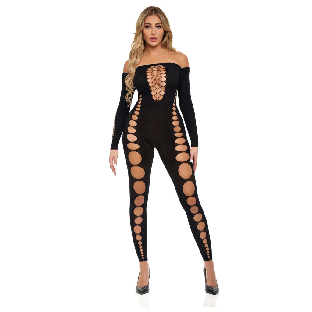 Dieser trägerlose Bodystocking sagt alles. Die vordere Enthüllung mit den breiten Öffnungen wurde ästhetisch gestaltet, um ein einzigartiges Styling zu schaffen. One Size / Material: 92% Nylon, 8% Elasthan