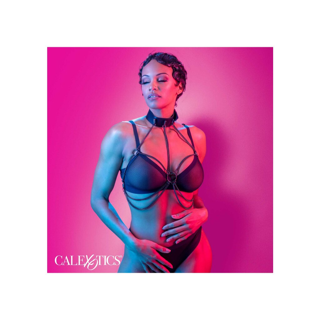 Umarmen Sie Ihre Kurven mit Selbstvertrauen mit dem Euphoria Collection Multi Chain Harness. Maßgeschneidert für einen sicheren und bequemen Sitz. Das Multi-Ketten-Design und der robuste Kragen verleihen Ihrem Ensemble einen besonderen Reiz und sind ideal, um wilde Fantasien zu erkunden. Der sichere Schnallenverschluss sorgt für eine einfache Einstellung, die Ihrem Komfort zugute kommt. Das moderne Design ist langlebig, innen mit weichem Samt und außen mit luxuriösem veganem Leder ausgestattet. Doppelte Polsterung und Nähte sorgen für Komfort und Zuverlässigkeit, während nicht anlaufende Metallakzente für einen stilvollen Touch sorgen. Erleben Sie die perfekte Mischung aus Komfort, Stil und Sinnlichkeit.