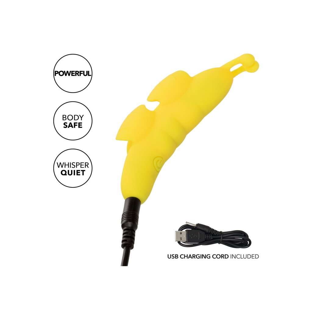 Ergonomically curved butterfly finger stimulator with tantalizing feelers