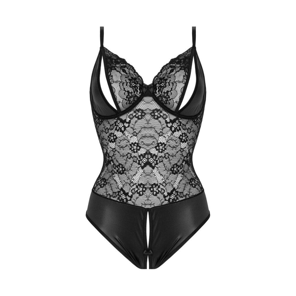 Christine Open crotch Wetlook-body Vesper - black S/M - XXL