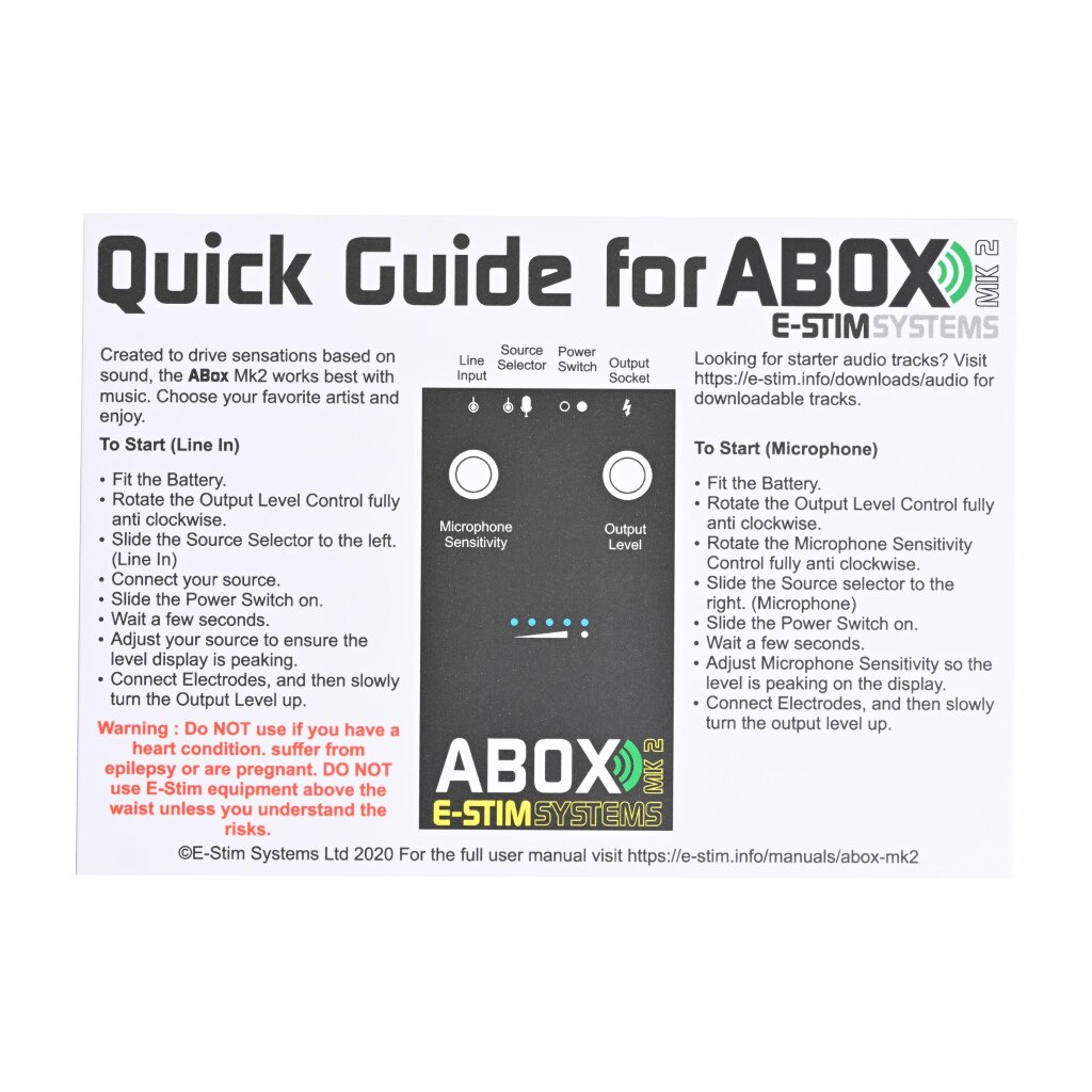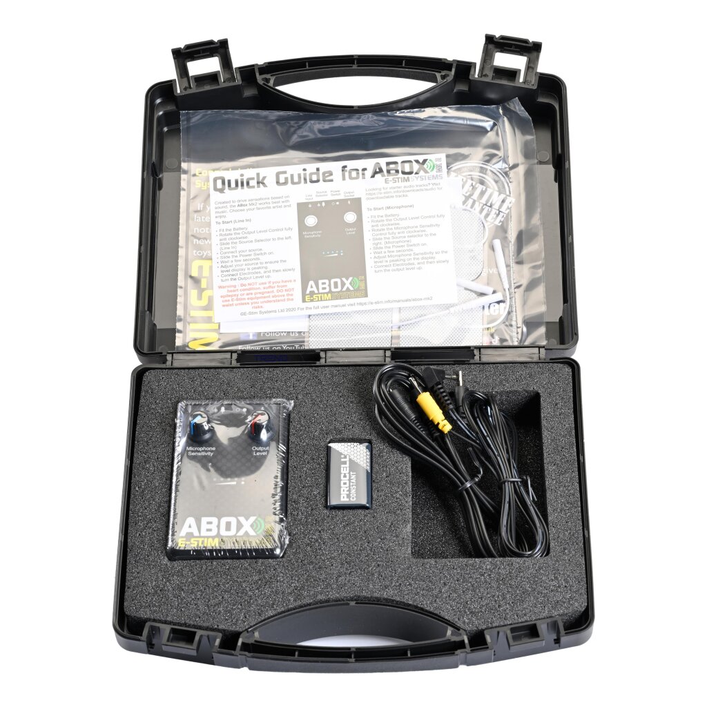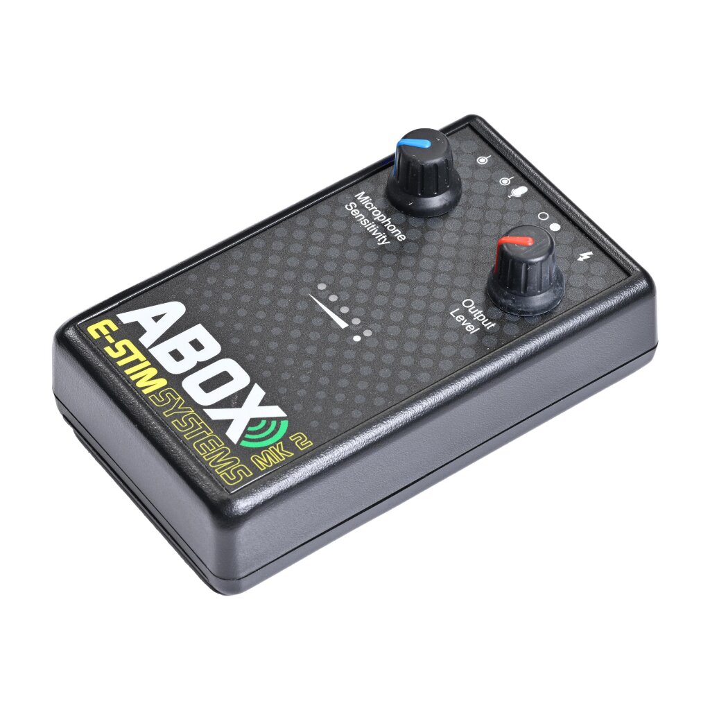 The ABox Mk2 is an upgraded design of E-Stim Systems original ABox, smaller, lighter with more power and a more sensitive microphone. The ABox Mk2 is a unique dedicated audio driven E-Stim powerbox. Possibly not for the beginner, it will certainly add something to any electro play toy box.