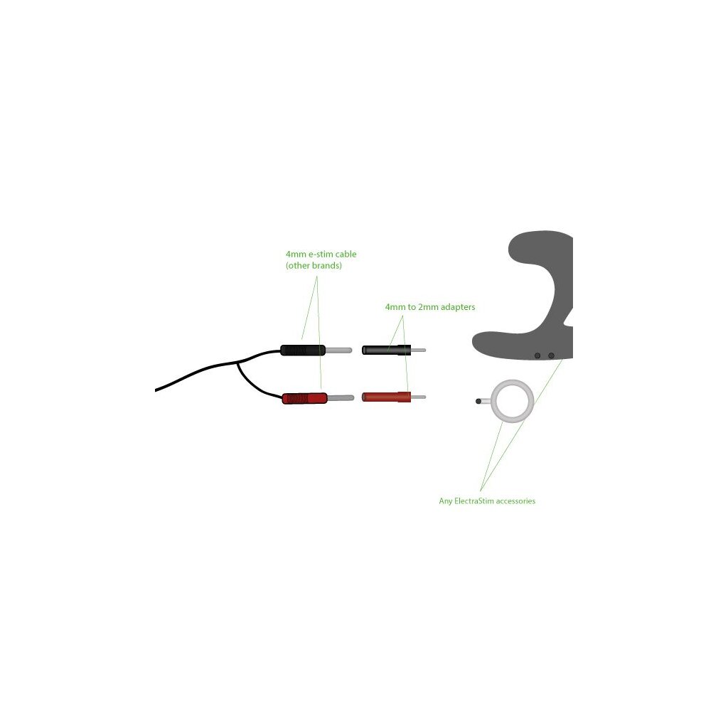 Wenn Ihr Elektrostimulator über 4mm-Steckeradapter verfügt und Sie ihn mit den ElectraStim-Elektroden verwenden möchten, benötigen Sie diesen Adaptersatz. Es enthält ein Paar Adapter für Ihr Verbindungskabel, um die Ausgänge in 2mm Stifte umzuwandeln.
