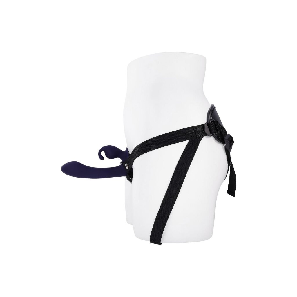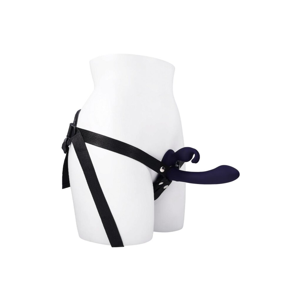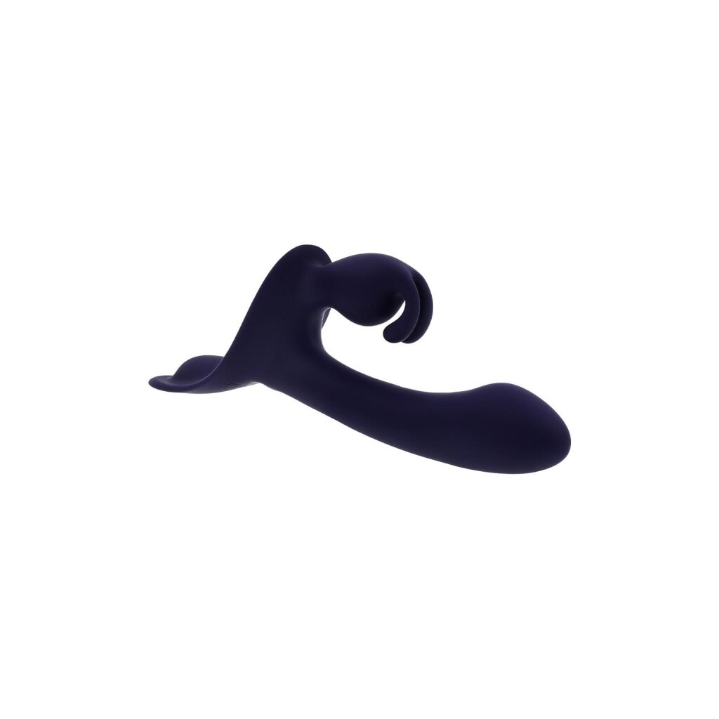 Give and receive intense pleasure with this strap-on triple-motor vibe that features a curved, chisel-tip main shaft, chunky bunny-eared stimulator, and a third tail flap motor that makes contact with the wearer. Every part of this unique silicone vibe is flexible to move with body motion, and the waist and thigh harness straps are completely adjustable. A sturdy ring holds the vibrator in place for maximum comfort and navigation.