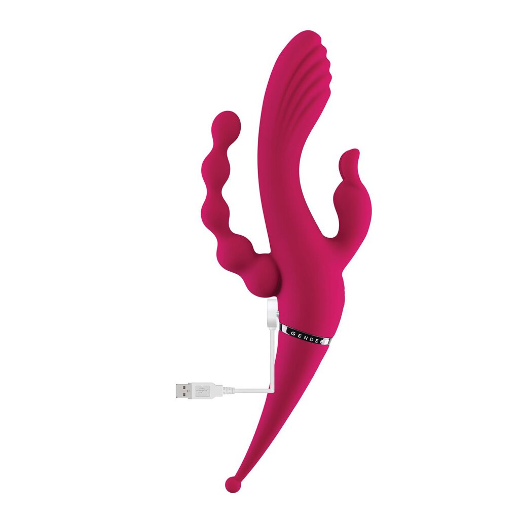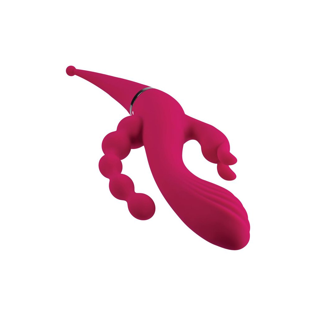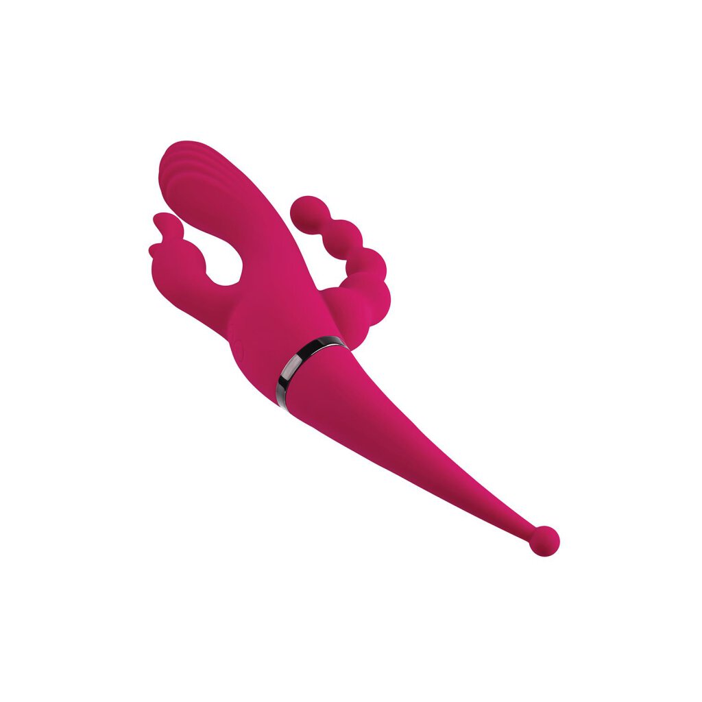Dieser bemerkenswerte Vibrator hat vier Stimulationspunkte auf knapp 10 Zoll! Der mittlere Schaft hat zwei spielbare Enden - eine sanft gebogene Seite mit einer bauchigen, strukturierten Spitze und ein dünnes, spitzes, rundes Kugelende für gezielte Stimulation. An beiden Seiten befinden sich zwei weitere Stimulatoren - ein fleißiges Kaninchen mit brummenden Ohren und einem klobigen Kopf sowie ein dünner, gebogener Perlenschaft, der sich leicht mit Ihrem Körper bewegt. Ein 2-Tasten-Bedienfeld schaltet 3 Motoren gleichzeitig ein, mit einer separaten Taste für die runde Spitze des Zeigers. Finden Sie heraus, welche Fantasien dieses Vierfach-Stimulationsspielzeug mit seinen zahlreichen Möglichkeiten zum Leben erwecken kann! Vollständig wiederaufladbar, in Wasser eintauchbar und leicht zu reinigen.