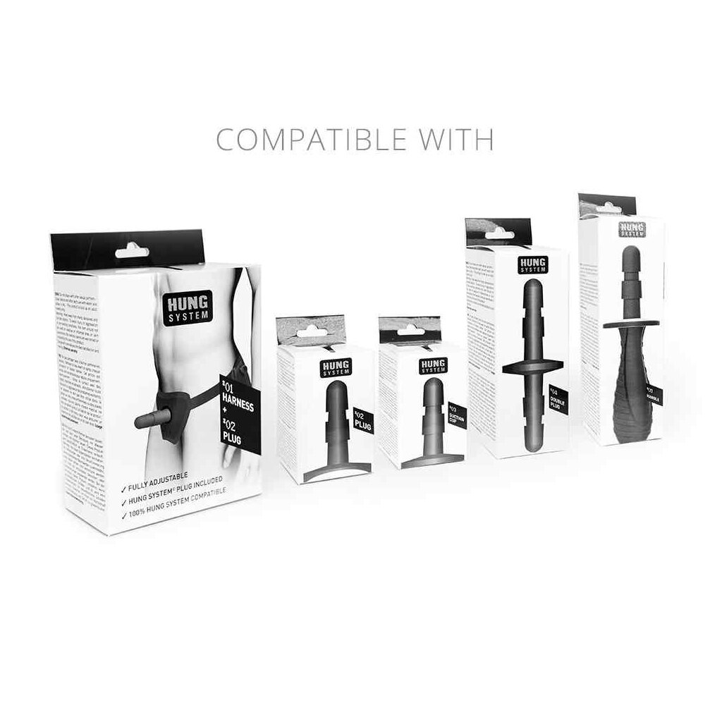 Hung System is a series of different plugs, on wich several dildos and anal plugs fit. The special powerful suction cup system in the base of the accessories and the unlimited variations, make this range unique.
