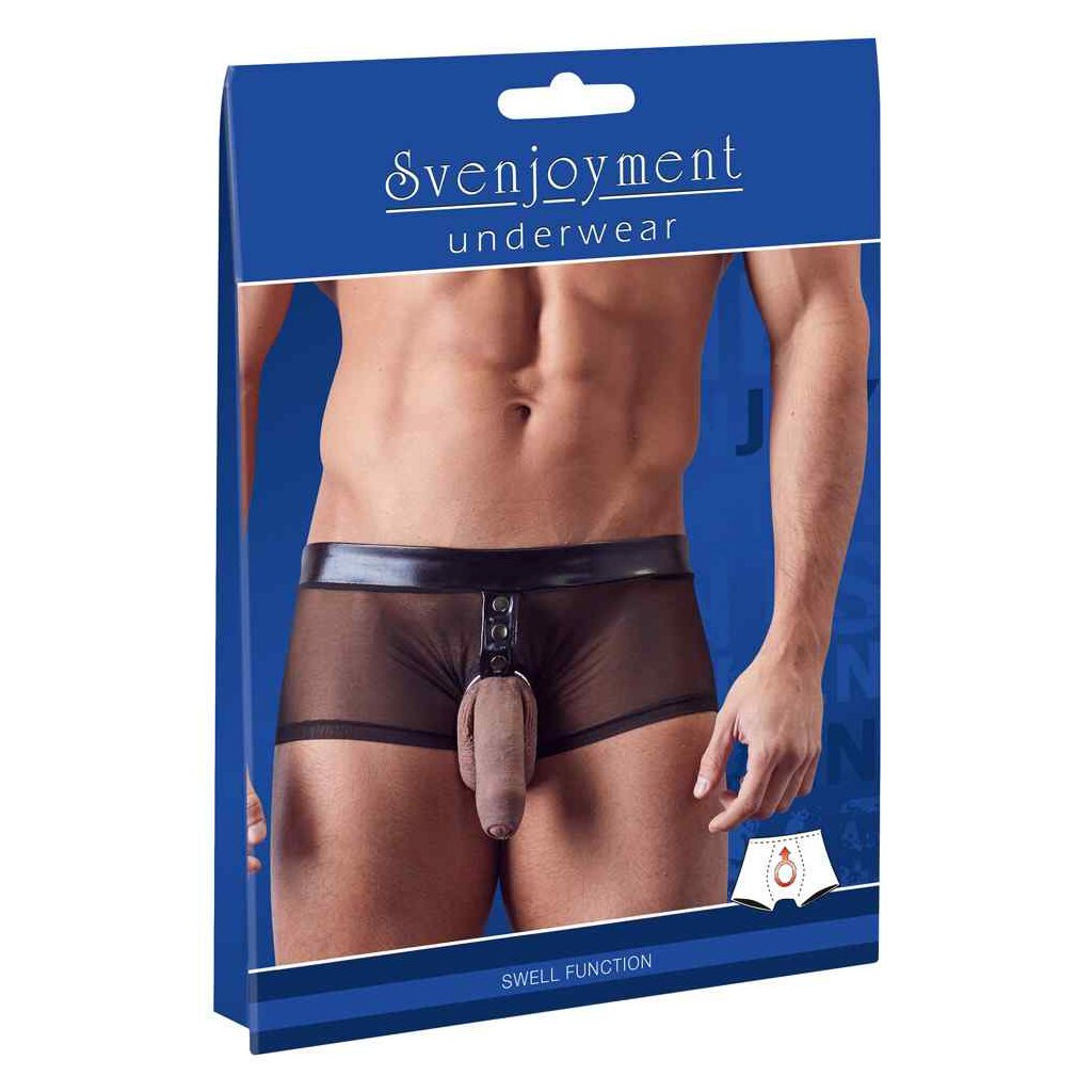 Fancy pants made out of powernet with wet look details. The attached cock ring (Ø 5 cm) and the jockstraps add the finishing touches to this hot look. Wonderfully stretchy and with a swell function.