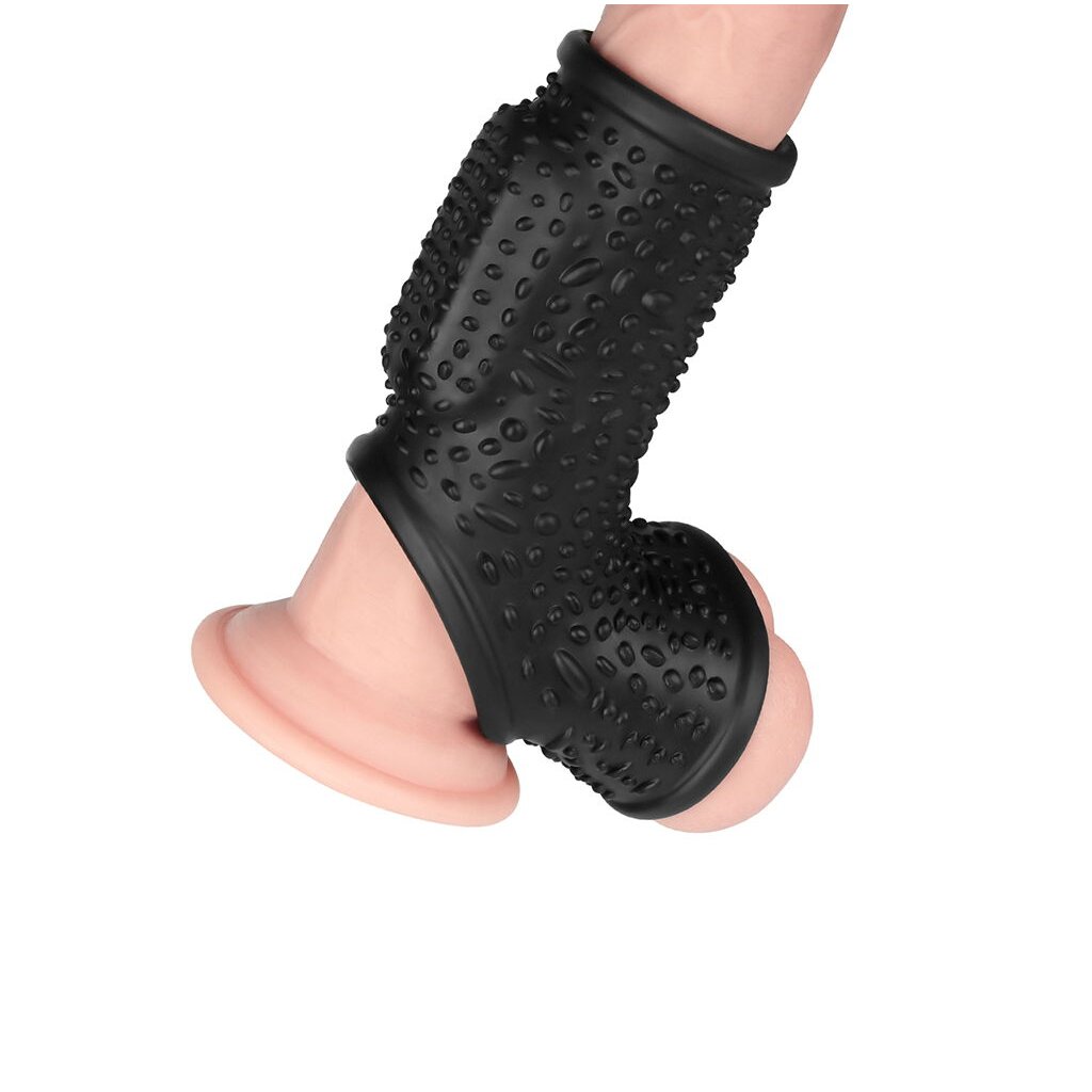 Place the sleeve around the base of the penis and scrotum for long-lasting fun.