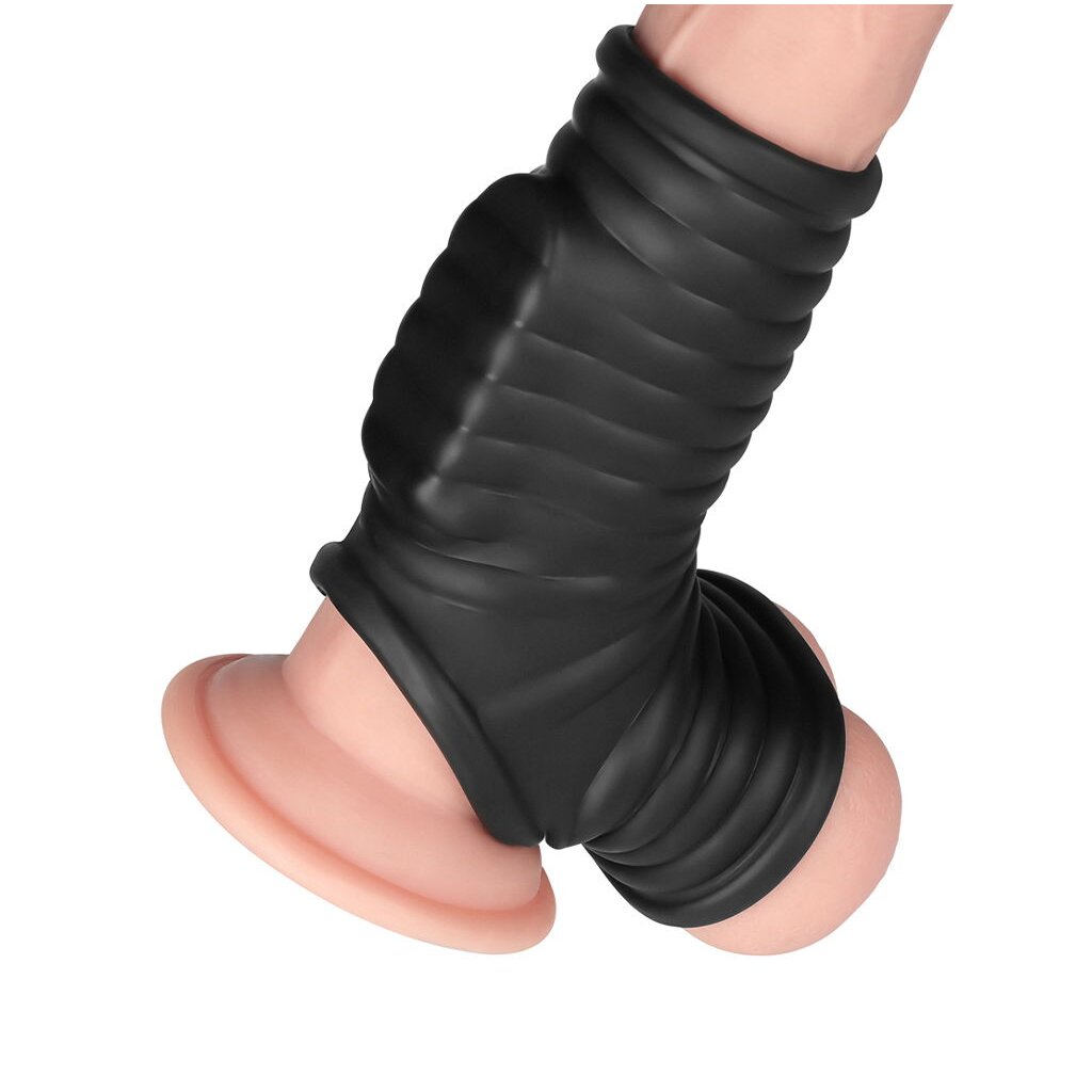 LoveToy Wave Knights Ring Vibrating Penis and Scrotum Sleeve (Ø 2,8 cm) – Noir