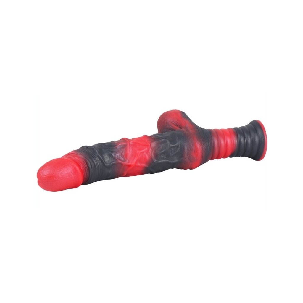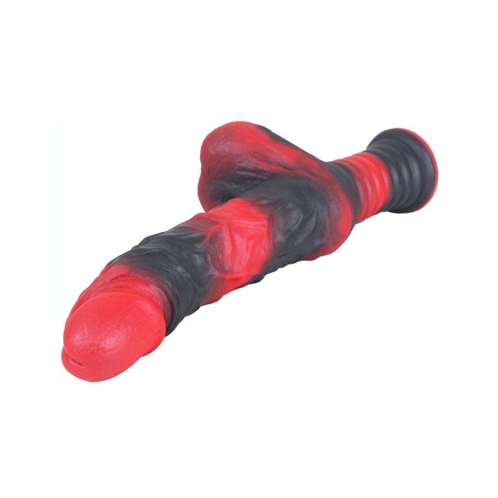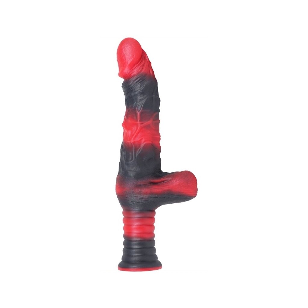 The Realix S dildo from Monstered is a unique addition to your collection, with a black and red color scheme that is sure to catch your eye. With its convenient handle, it's easy to maneuver for a customized experience. This silicone beauty features an insertable length of 14 cm and a width of 4 cm, providing satisfaction with every use. The surface, which resembles veins, provides a lifelike feel and added stimulation. Made from soft silicone, it's comfortable and body-safe so you don't have to worry. Spice up your intimate moments with this playful and satisfying toy.