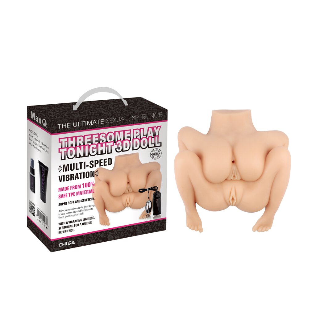 Diese freche ManQ Threesome Play Tonight 3D Puppe ist bereit, dich auf jede Weise und zu jeder Zeit zu befriedigen, die du dir wünschst! Erlebe die Enge eines superheißen Hinterns oder den Nervenkitzel einer realistischen Vagina! Nicht nur normale vaginale oder Hintertür Vergnügen, wirst du zwei Frauen in einem Masturbator fühlen. Jeder Tunnel hat seine eigene einzigartige innere Textur, und du wirst das Gefühl lieben, mit zwei sexy Damen zu spielen. Threesome Play Tonight 3D Doll, bietet dir 4 überlegene und hocherotische Erfahrungen mit zwei verschiedenen Frauen! Hergestellt aus 100% sicherem TPE-Material, extrem weich und dehnbar. Alles, was du tun musst, ist etwas Gleitmittel auf Wasserbasis hinzuzufügen, um loszulegen!