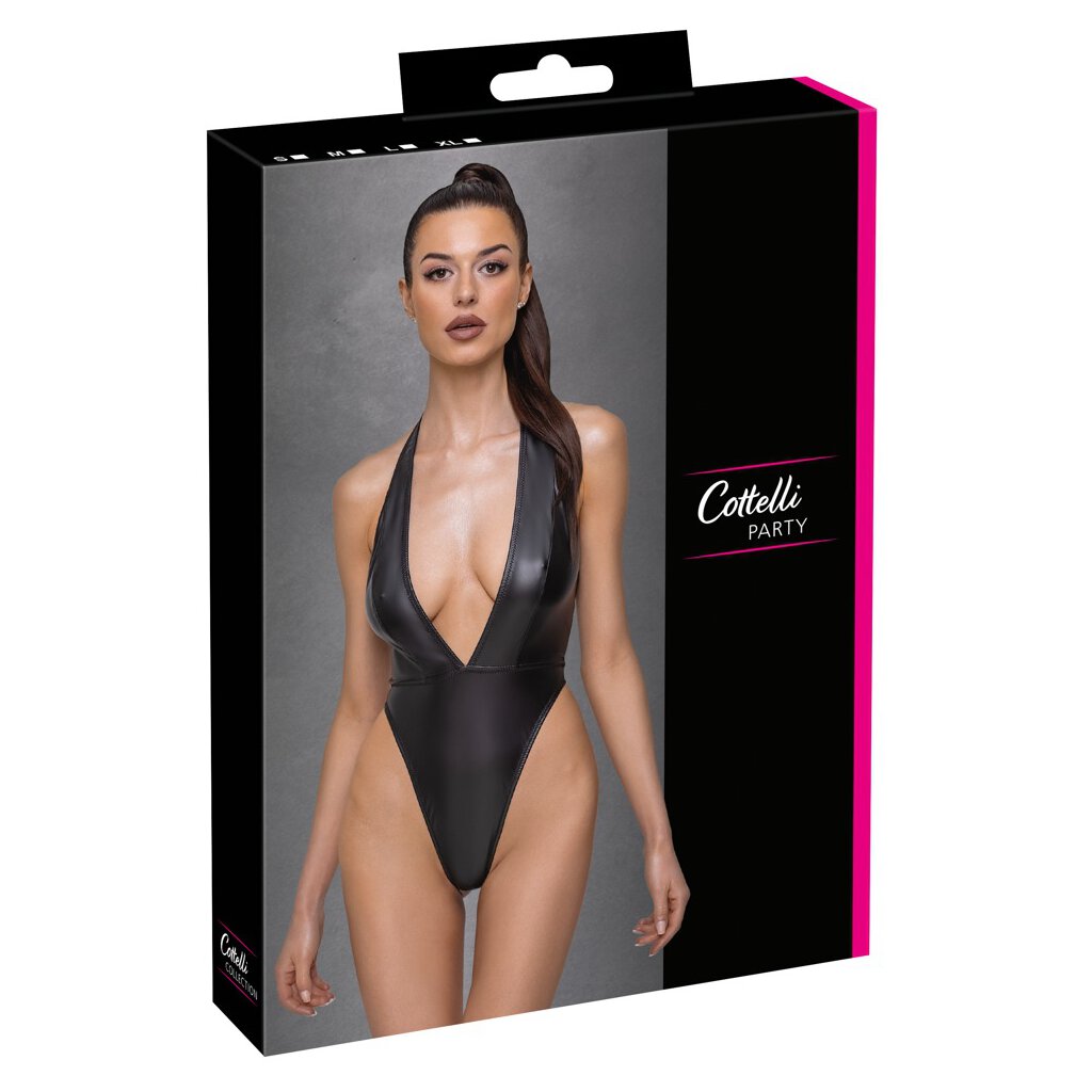 Knapp geschnittener Riostring-Body im edlen schwarzen Mattlook von Cottelli PARTY, der sich weich und elastisch hautnah anschmiegt. Mit atemberaubend tiefem Dekolleté und freiem Rücken. Neckholder mit Druckknopfverschluss. Extra hohe Beinausschnitte bringen Po und Beine optimal zur Geltung. Praktisch und verführerisch zugleich ist der Druckknopfverschluss im Schritt.