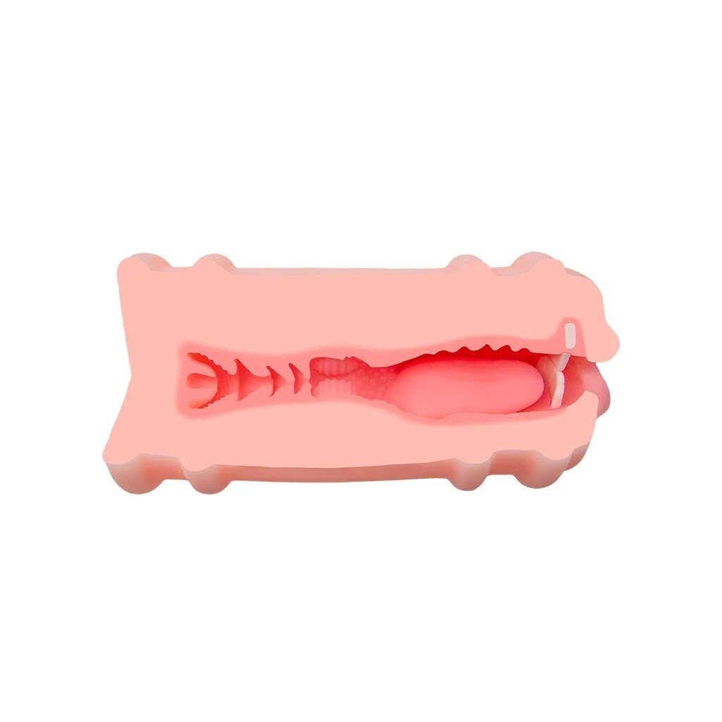 À l intérieur, les deux crocs souples massent ton sexe pendant que les lèvres élastiques s étirent autour de toi. Tu sens ensuite une langue ferme, des dents réalistes et un tunnel serré rempli de textures qui stimulent chaque millimètre de ton pénis.