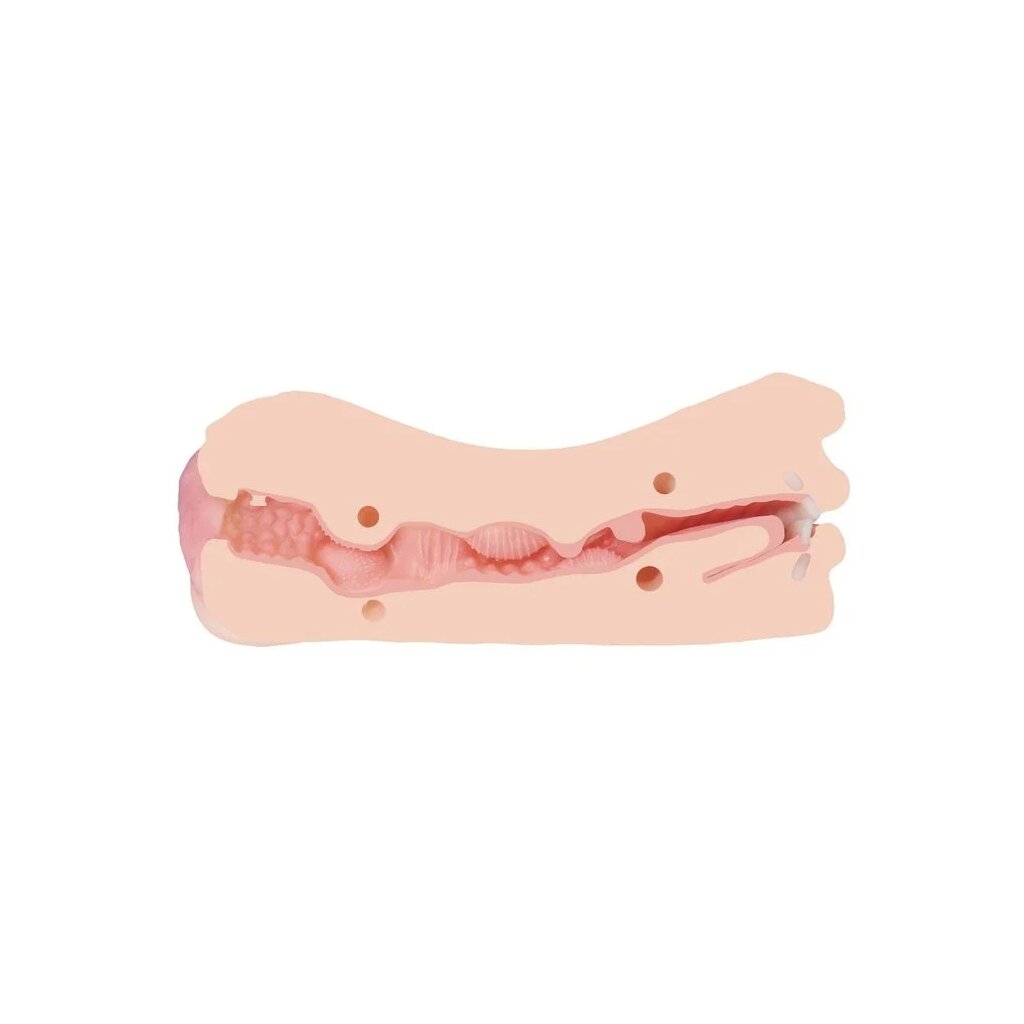 Le vagin, avec ses lèvres externes détaillées, s’ouvre sur un tunnel serré rempli d’anneaux, de crêtes et de zones G stimulantes. La structure interne masse ton pénis à chaque poussée, rendant l’expérience douce ou intense selon ton rythme.