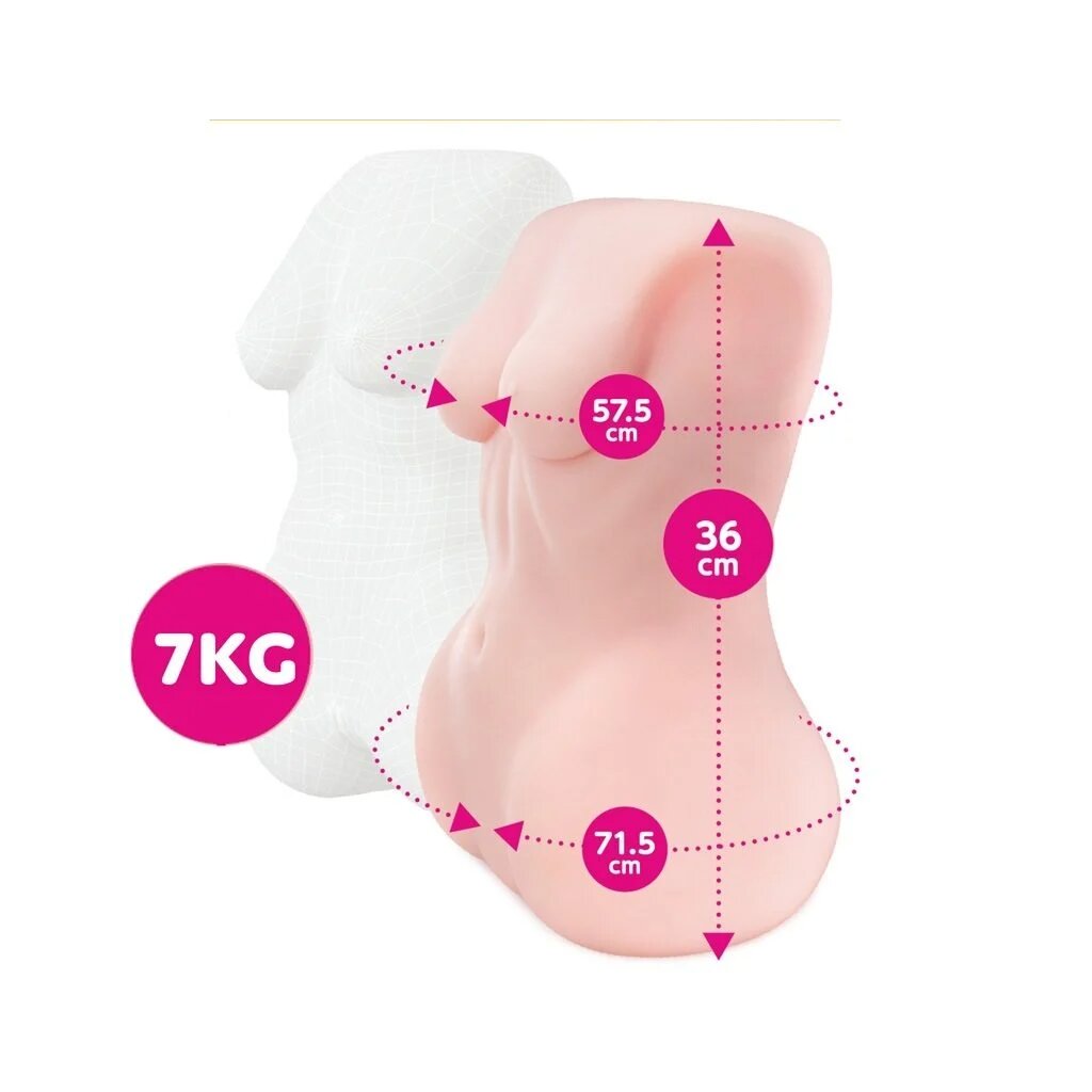 Weighing 7 kg, she stays in place during deep strokes, riding, doggy and more. Her detailed sculpting, natural skin tone and body proportions create a premium experience that feels close to the real thing.