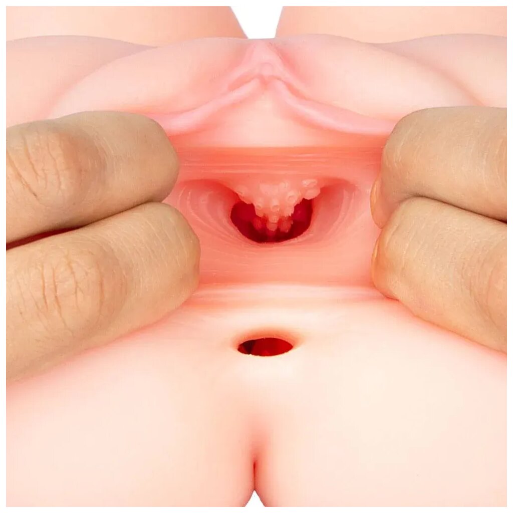 You can choose between two differently structured tunnels. The vaginal tunnel around 15,5 cm long welcomes you with soft lips massaging bumps and several ribbed chambers that hug your shaft closely. The anal tunnel is tighter about 13,8 cm long and lined with ringed textures that build intense pressure and quickly push you toward climax. Both entrances let you explore different sensations and fulfill your hentai inspired fantasies.