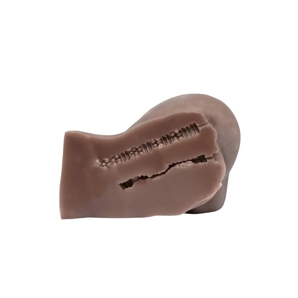 Her anal tunnel offers a tight entrance followed by rings and beads that slide smoothly along your shaft, perfect for steady and intense stimulation. Her vaginal tunnel is a true highlight: three cervix-like gates create increasing levels of pressure and texture, pulling you deeper into her body with every stroke.