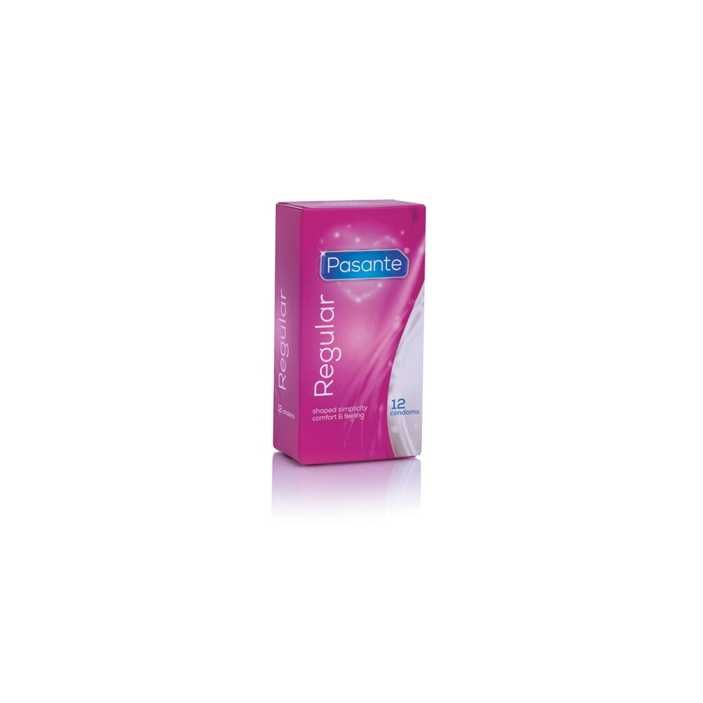 Das Pasante Rugular ist ein anatomisch geformtes Standardkondom mit einer durchschnittlichen Nennweite von 54 mm und einer breiteren Spitze. Weil das Kondom mehr Platz für die Eichel bietet, ist es bequem zu tragen und gibt mehr Gefühl beim Sex. Die Kondome werden mit Gleitmittel und Reservoir geliefert.