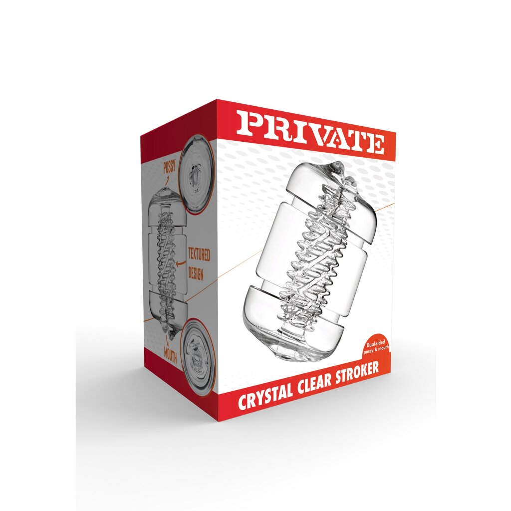 Ultimatives visuelles Vergnügen: Soft Duo Sleeve für Muschi und Mund. Erleben Sie gesteigertes Vergnügen mit PRIVATE Dual Sided Crystal Masturbator. Dieser einzigartige Masturbator bietet verlockende Befriedigung und macht mit jedem Schlag Lust auf mehr. Mit seinen beiden Lustzonen - eine mit einem verführerischen Mund und die andere mit einem fesselnden Hintern - können Sie sich Ihren wildesten Fantasien hingeben. Die ultra-weiche, zusammendrückbare Hülle passt sich jeder deiner Bewegungen an und steigert dein Vergnügen.