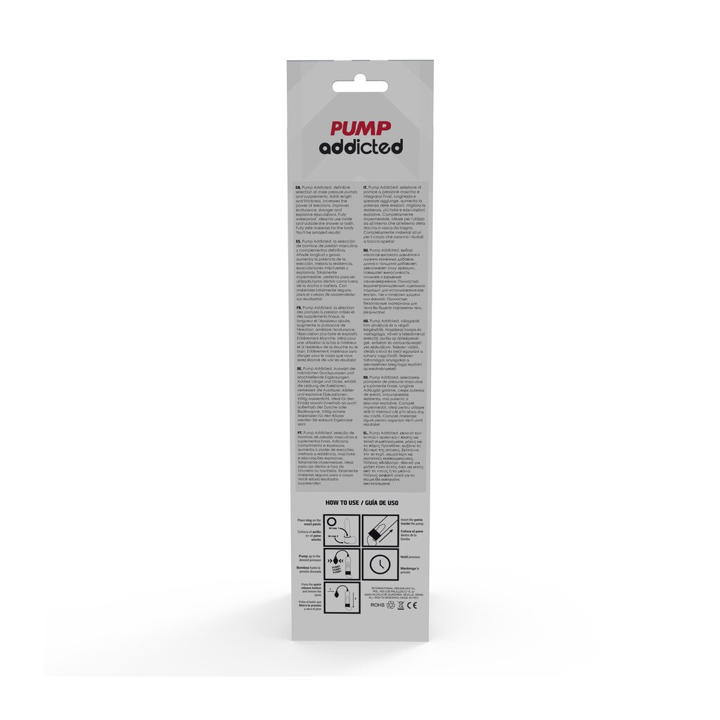 Pump Addicted helps to achieve an erection in an easier way by using a vacuum system that ensures that the blood is concentrated in the still flaccid penis. The erection is achieved and maintained by a comfortable and hermetic seal at the base of the body, right at the junction of the penis with the pubic bone, keeping the blood in the torso. Thanks to the cuff, the seal is firm, comfortable and tight without squeezing.