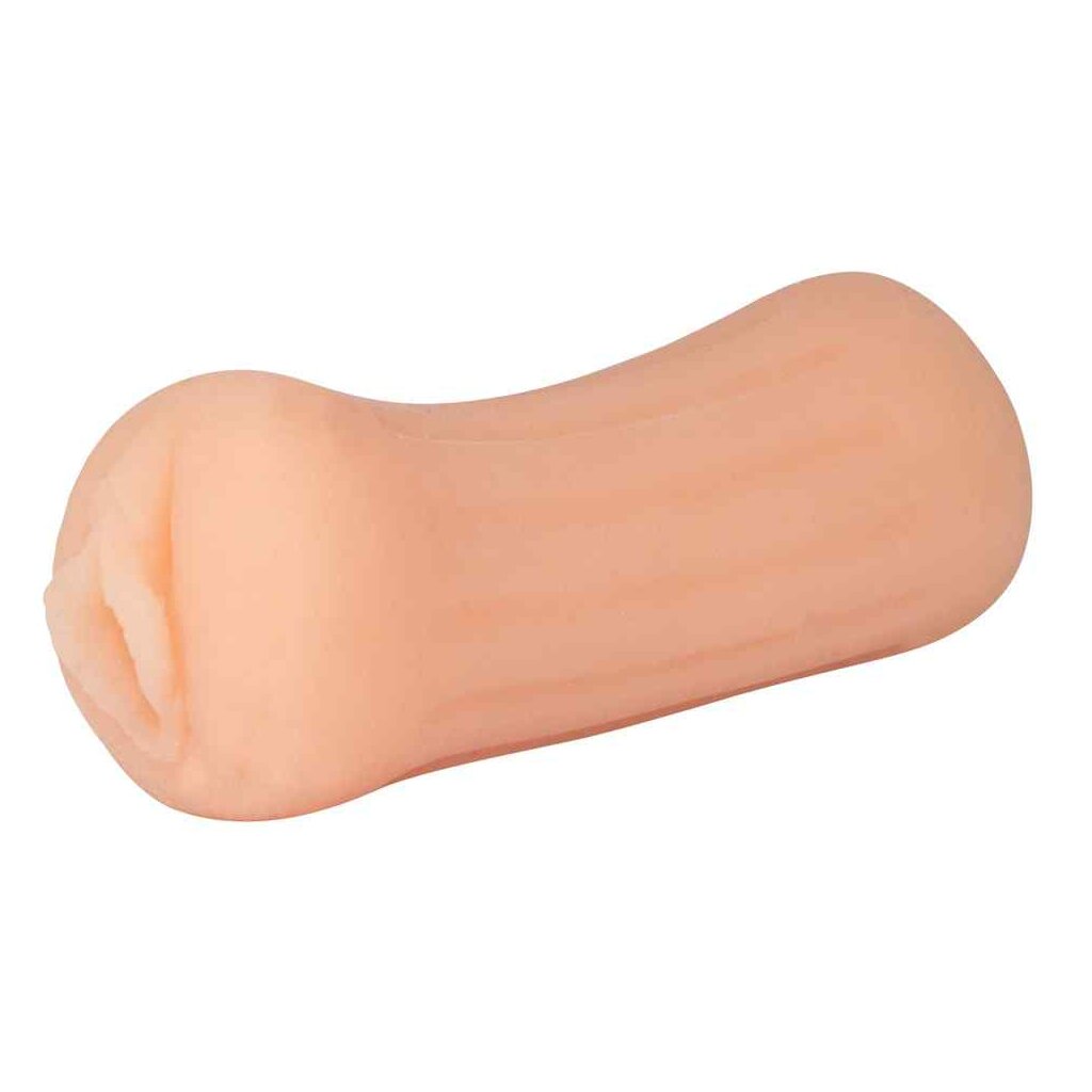 Handlich klein in Vaginaform mit ausgeprägten Schamlippen und Kitzler. Innen genoppt und gerippt, beidseitig offen. Extrem dehnbar, passt sich dem Penis an. Hautfarben. Ca. 11 cm lang. Außen mit griffigen Längsrillen. Material: TPR.