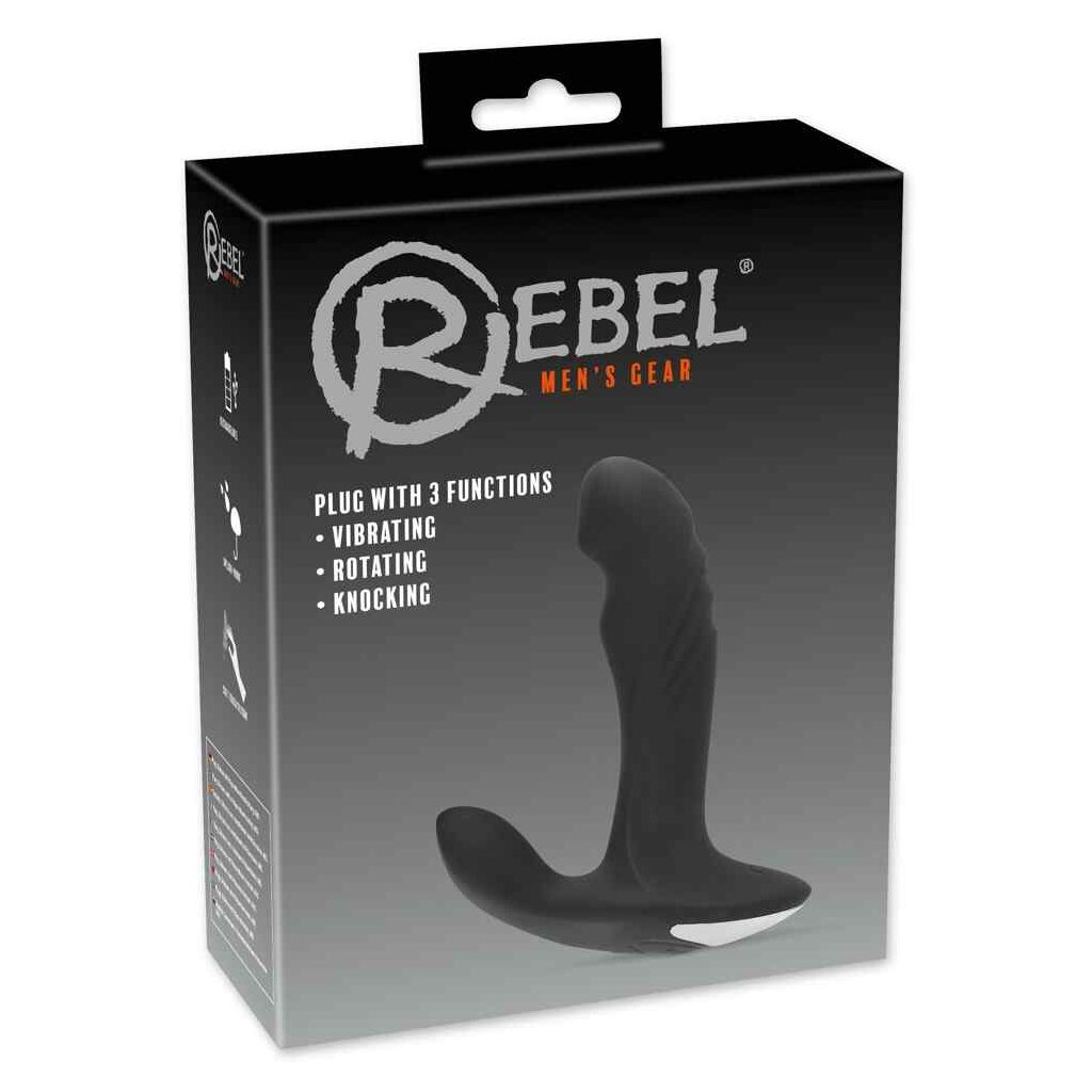 Der schwarze Analplug mit Perineumreizer, gerilltem Schaft und Verdickung unterhalb der leicht gebogenen Spitze verwöhnt gleich mit 3 prickelnden Funktionen, die alle getrennt voneinander steuerbar sind: 7 Vibrationsmodi stecken im Perineumreizer, 5 Klopfmodi in der Spitze und 5 Rotationsmodi warten im unteren Schaft.