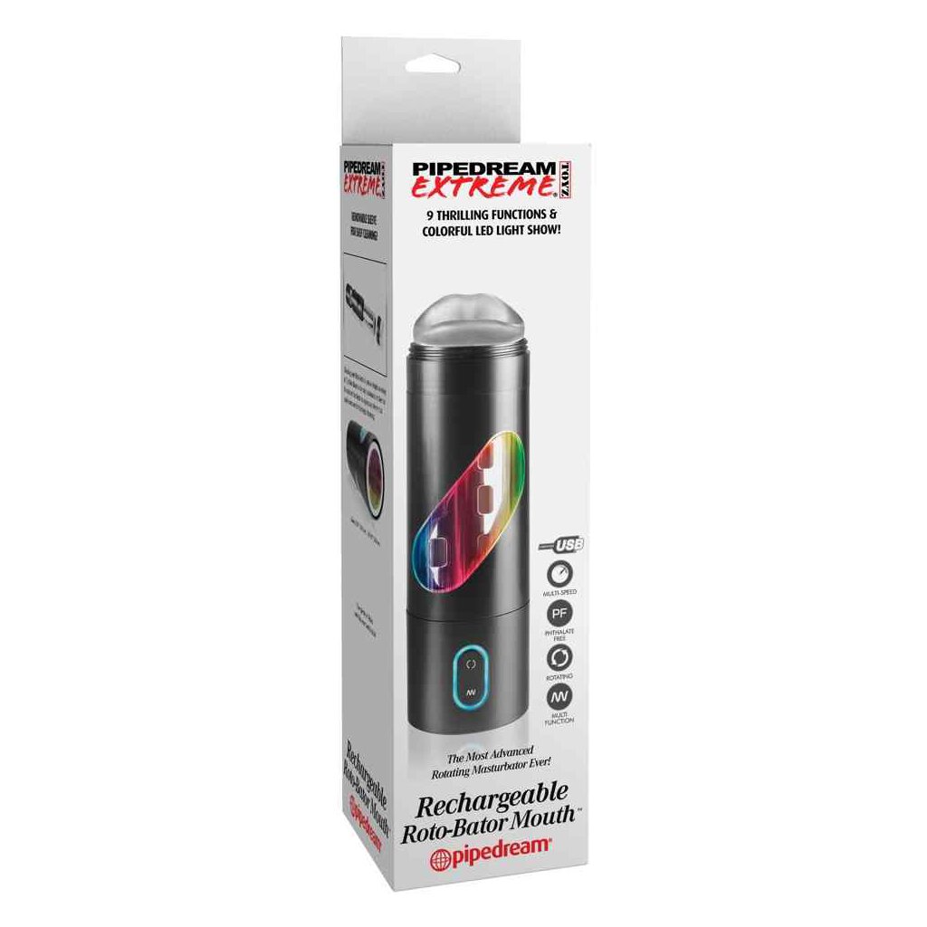 Dieser Masturbator massiert den Penis in 9 ekstatischen Rotationsmodi und mit realistischer Mund-Öffnung. Das Highlight ist dabei, dass er die Richtung auf Knopfdruck ändern kann. So entstehen die unglaublichsten Massagen, während die unterschiedlichen Ebenen von Stimulationsstrukturen den Penis umschließen und verwöhnen. Jeder Modus hat ein eigenes Lichtmuster in verschiedenen Farben. Die Sleeve ist entnehmbar für eine schnelle Reinigung. Inklusive USB-Ladekabel.