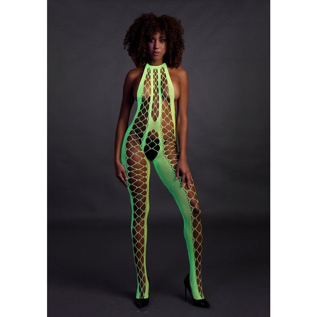 Dieser wunderschöne Bodystocking hat einen auffälligen Neckholder und einen tief ausgeschnittenen Rücken.