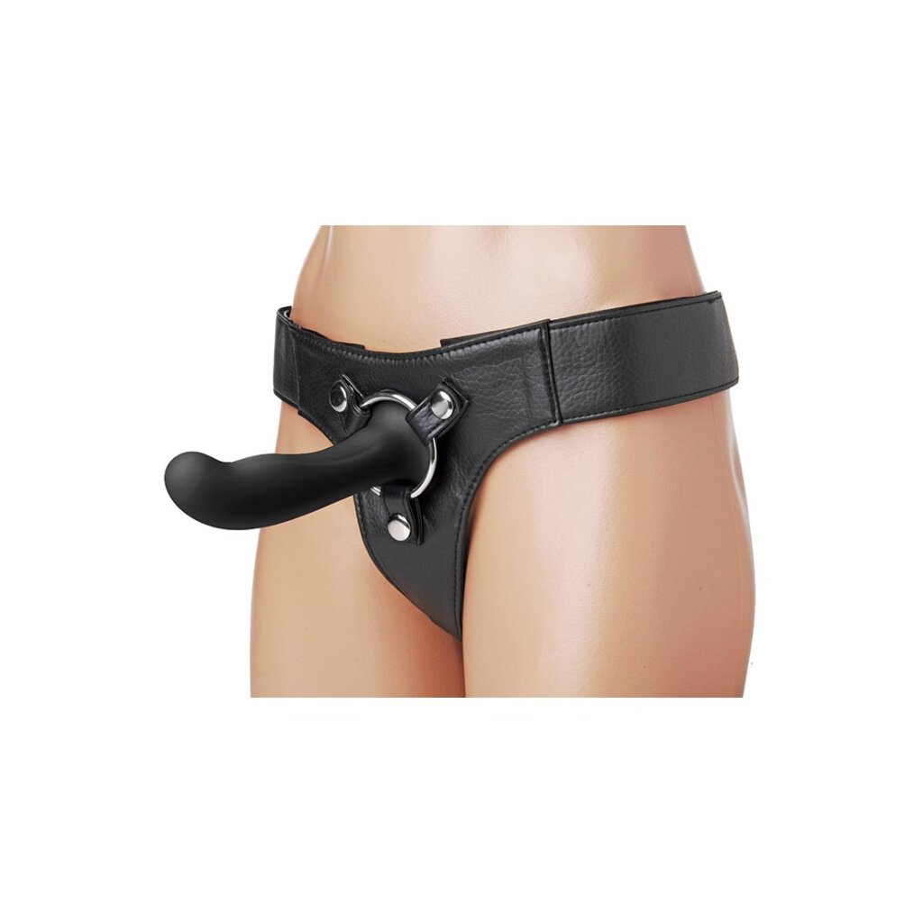 The horn-shaped base fits most standard strap-on harnesses and feels firm yet flexible.
