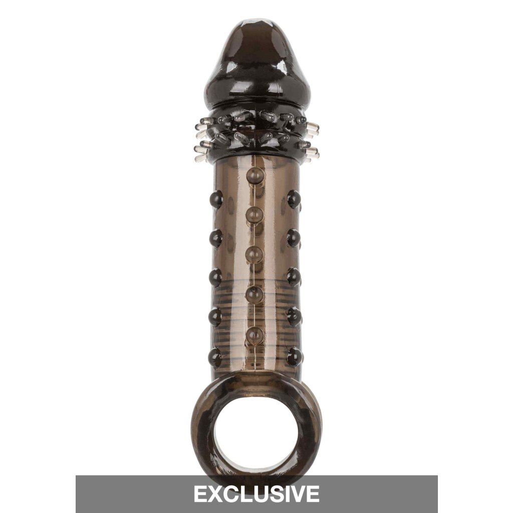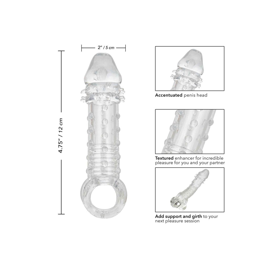 Offrez-vous et votre satisfaction mutuelle avec le puissant amplificateur masculin Ultimate Extender. Alors que la succion du manchon fermé et la chambre nervurée le ravissent, la circonférence supplémentaire, la texture cloutée excitante et les 2 pouces de longueur laisseront votre femme tremblante. La sangle scrotum intégrée et le manchon épais offrent un soutien supplémentaire à l'érection et augmentent l'endurance pour prolonger et intensifier le plaisir de tout couple. Augmentez votre plaisir et ne vous contentez jamais de moins lorsqu'il s'agit de la taille, notre extenseur super extensible avec sangle scrotum de soutien vous fera désirer plus, plus, plus, plus... Notre extenseur super extensible s'étire pour s'adapter à n'importe quelle taille d'homme. Le TPE doux et extensible est non parfumé, sans phtalate et sans entretien pour garder vos endroits les plus sensibles, heureux et sains. Profitez d'un nettoyage facile avec ce manchon stimulateur sans entretien, il suffit de le laver avec du savon et de l'eau chaude avant et après chaque utilisation. Utilisez une quantité suffisante de lubrifiant pour une insertion facile.